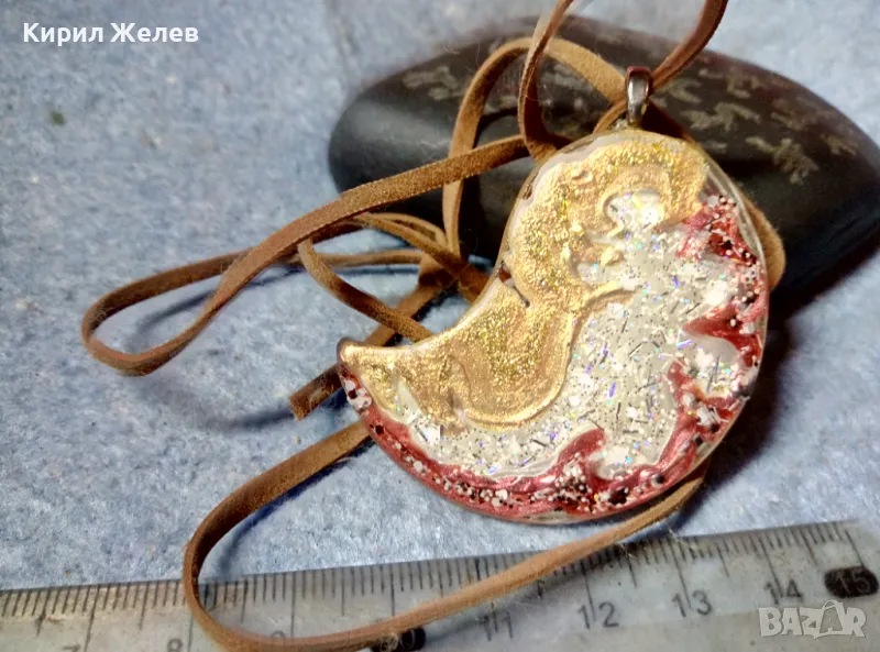 КРАСИВ ВИНТИДЖ АРТ МЕДАЛЬОН ЦВЕТНО СТЪКЛО / ЕМАЙЛ и ШНУРЧЕ от ВЕЛУР 48771 → Обява 48161094