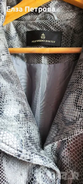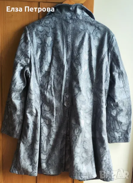 Дамско зимно/късна есен от еко кожа в змийски принт в черно и светло сиво; 4XL÷5XL → Обява 48162357