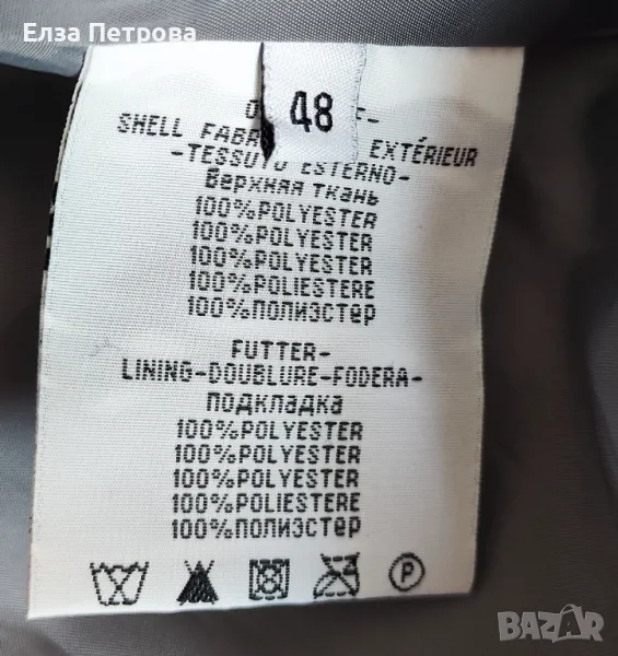 Over size: 4XL÷5XL; БГ № 54÷56. Гръдна 128 см, талия 124 см, обиколка в най-долната част 170 см, ширина от рамо до рамо 49 см, дължина на ръкава 46 см, дължина на якето от рамото 83 см. С два функциониращи външни джоба и един вътрешен джоб. Като ново, не личи, че е носено. Продавам го защото не ми става. Изпращам чрез Еконт до офис/до адрес посочен от получателя, с 10% отстъпка на куриерската услуга, с опция преглед и тест преди заплащане.