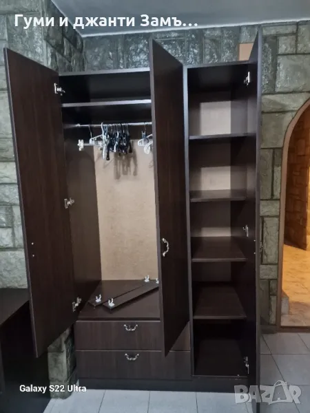 2 бр нощни шкафчета портманторакламатрактоп матракГардероб Тоалетка с три чекмеджета и огледалоздрави мебели по поръчказапазеницвят Венге