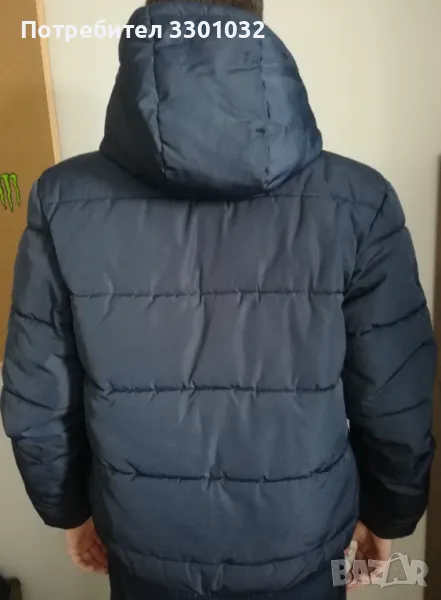 Тъмносиньо яке H&M от младежката линия Divided,европейски размер M,по етикет за височина 170 см.Качулката не се сваля.С ластици отдолу и на ръкавите за задържане на топлината.Два външни джоба и един вътрешен.Рамене - 53 см,гръб през средата - 69 см,ръкав - 69 см,гръдна обиколка/под мишниците/ - 117 см.В отлично състояние - малко използвано,заради бързия растеж на тийнейджър.
