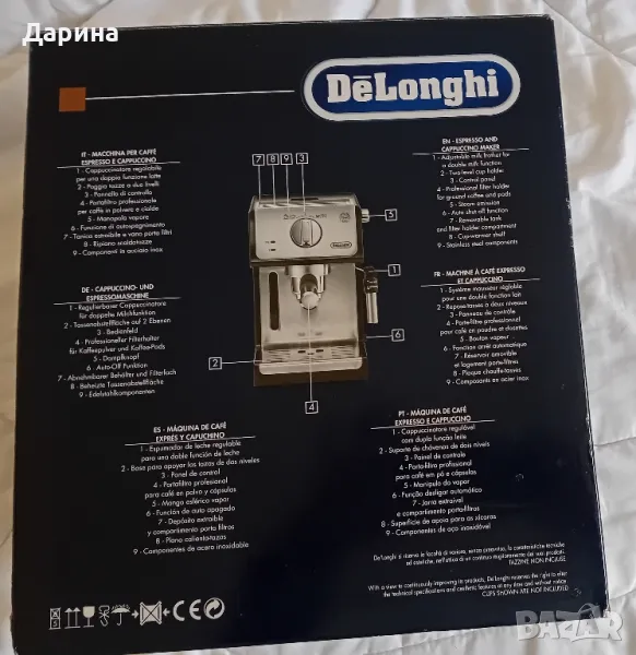 Кафемашина DeLonghi . Перфектна . Само надписите на предното панелче са поизтрити , вижда се на снимката .