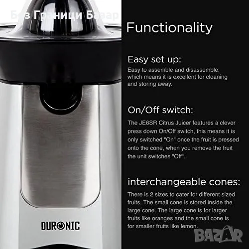 Мощен 100W мотор за бързо и лесно изцеждане на цитруси.