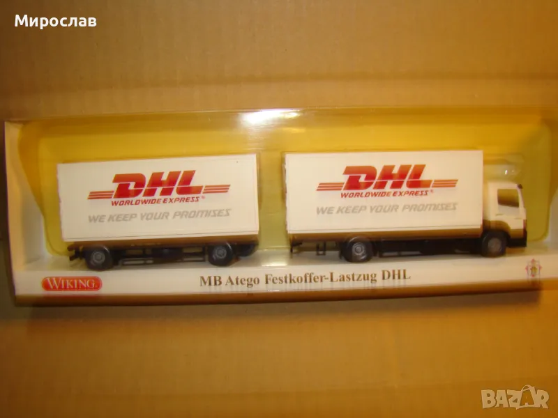 WIKING H0 1/87 MERCEDES BENZ ATEGO DHL КАМИОН МОДЕЛ ТИР ИГРАЧКА → Обява 48165372