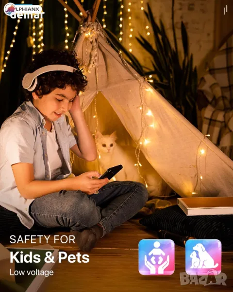 Интелигентните RGB светлини предлагат приложение и дистанционно управление за лесно персонализиране, включващи широка цветова палитра за създаване на празнична атмосфера. С дължина 6 метра и 200 светодиода, те са идеални за декориране на дървета, врати и външни пространства. Тези IP44 водоустойчиви светлини издържат на всякакви атмосферни условия, което ги прави идеални както за вътрешна, така и за външна употреба. Удобен таймер и функция за памет позволяват автоматизирани графици и лесно извикване на предпочитаните настройки, подобрявайки вашия коледен декор с 16 милиона цвята за уютна, весела празнична атмосфера.