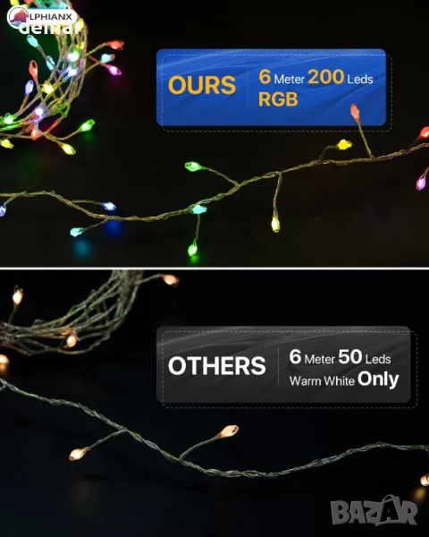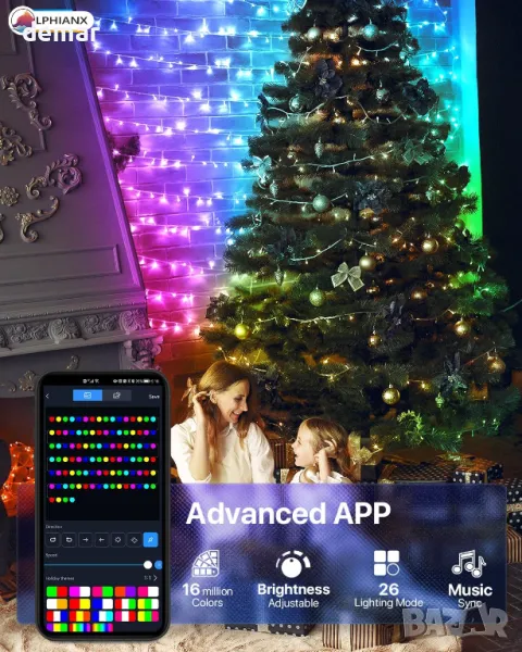 Интелигентни приказни светлини, 6 метра 200LED RGB приложение/дистанционно с 26 режима