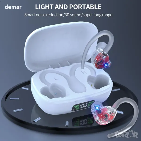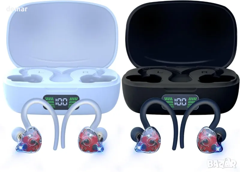 JISWK 2 пакета безжични слушалки в ушите, Bluetooth 5.3, 40 ч, кукички за уши
