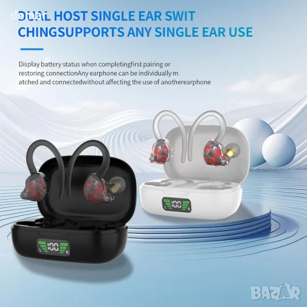Отстранете изолационния филм преди употреба. Слушалките се включват автоматично, когато се извадят от кутията за зареждане или могат да се включат ръчно с натискане за 2 секунди. Снабдени с OVP и NTC защита на захранването, те предлагат до 6 часа възпроизвеждане с едно зареждане и 40 допълнителни часа с USB-C кутията за зареждане. Съвместим с устройства с Bluetooth, като телефони, таблети, компютри и телевизори.
