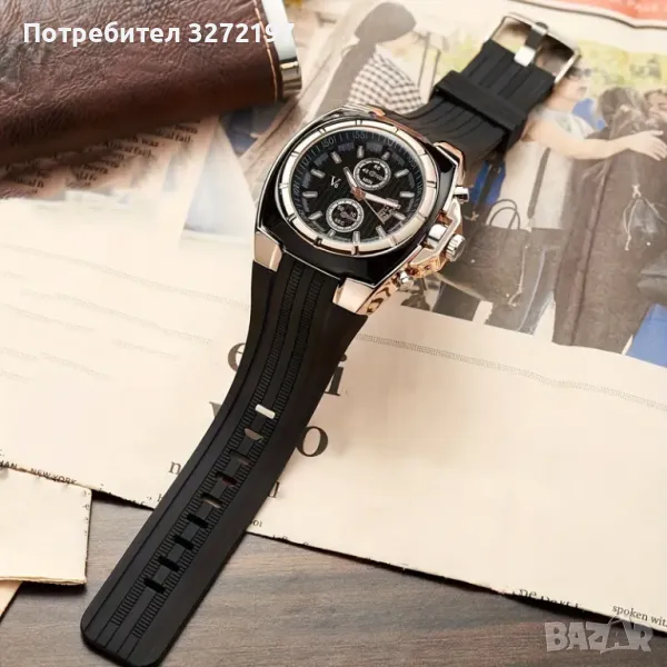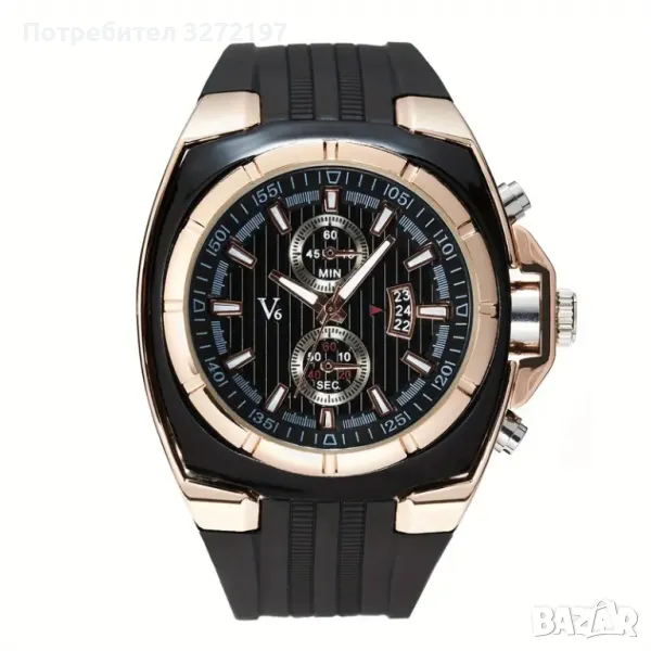 V6 Мъжки кварцов часовник,силиконова каишка,голям циферблат,календар с три очи.