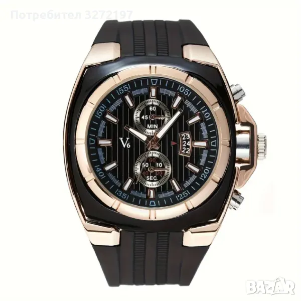 V6 Мъжки кварцов часовник,силиконова каишка,голям циферблат,календар с три очи