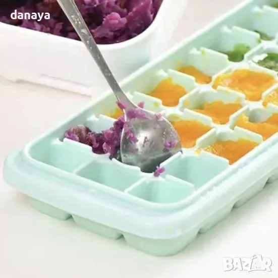 💡 Съвет: Добавете парченца плодове или билки във всяко гнездо за креативни и ароматни ледени кубчета!