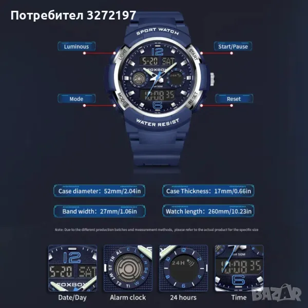 числа за време Цифров и аналогов спортен часовник с двоен дисплей