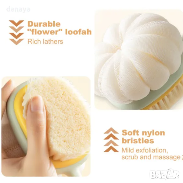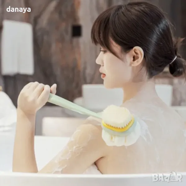 Четка за душ 2 в 1 с гъба и тривка за гръб