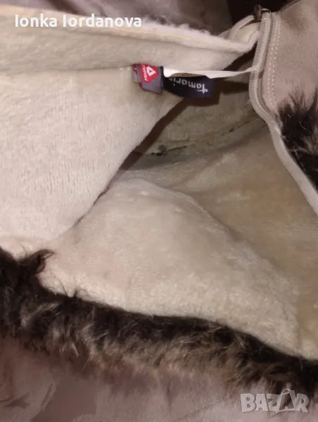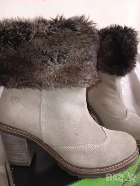 Дамски боти, цвят екрю (бежов). С мека кожена украса отвън, отвътре също с топла и мека вътрешност.