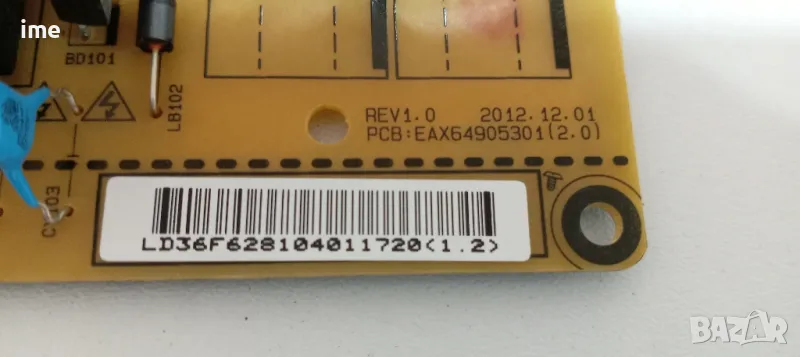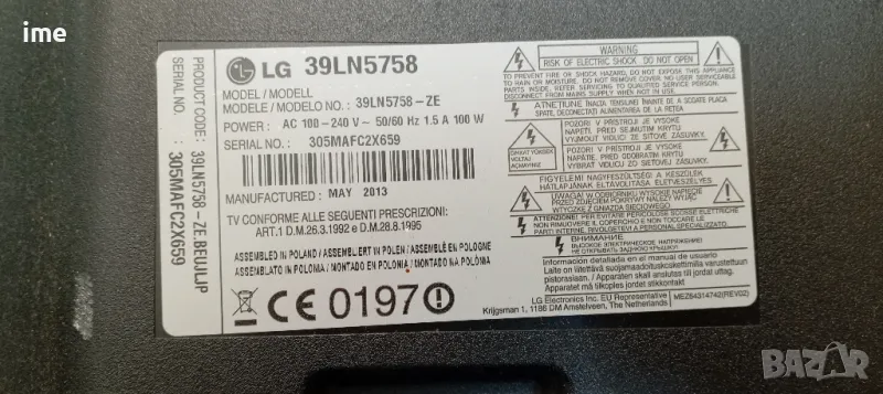 Power Board - захранване EAX64905301(2.0) LGP3739-13PL1. Свален от LED ТЕЛЕВИЗОР LG 39LN5758 с панел HC390DUN-VCFP1-21XX. Работещ от телевизор със СЧУПЕН ДИСПЛЕЙ.