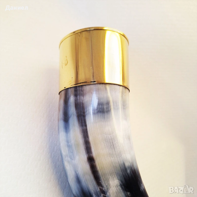 Антични чаши от рог с бронзов обков и стойка от ковано желязо, Рог за пиене, античен рог за пиене