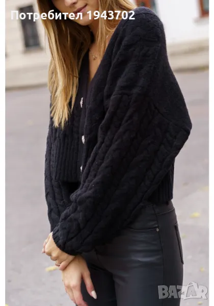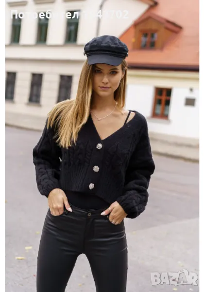 Къса дамска жилетка в черен цвят, модел 50976.