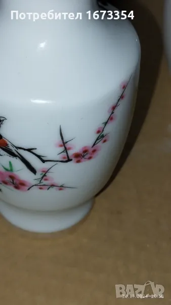 2 ) Малка китайска ваза с щампа с много красив рисунък ( птица) ,много добро състояние .Височина ,10 см.Цена 15.00 лв