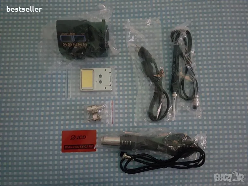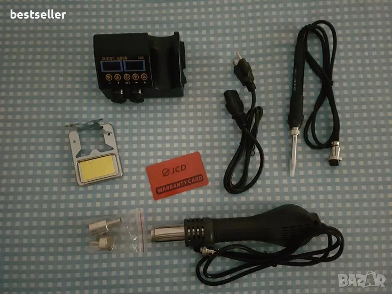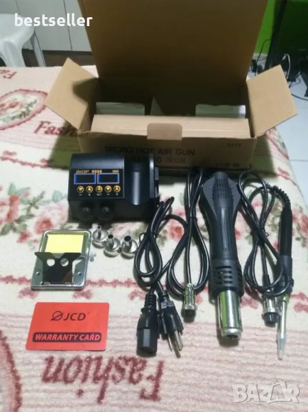 Продавам комбинирана станция JCD 8898 pro за запояване и разпояване с горещ въздух и поялник, с 2 LED цифрови дисплея - независими един от друг. Подходяща за запояване и разпояване на SMD елементи, ремонт на мобилни телефони и компютърна техника.