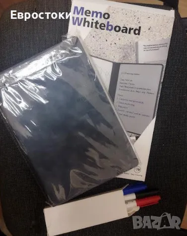 Уникален дизайн с корица. Двойна преносима дъска за планиране е подвързана със синя мраморна изкуствена кожа и включва три молива (червено, синьо, черно). Страхотна идея за подарък за всеки организиран човек!