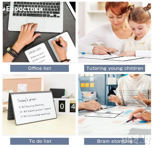 Широко приложение. Изтриваща дъска за писане е подходяща като заместител на хартия за използване у дома, на работа и за деца. Перфектна е за кратки бележки, планиране или за антистресово рисуване.