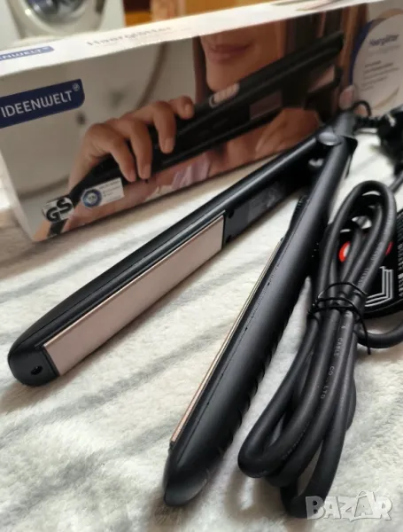 Преса ЗА ИЗПРАВЯНЕ IDEEN WELT керамични плочки, дълъг кабел - около 1,8 м, с въртящ се накрайник за лесно използване, загрява бързо (голям температурен диапазон - 80-200 градуса), светлина, гънкив бяло естетическа изработка, лесен за използване.