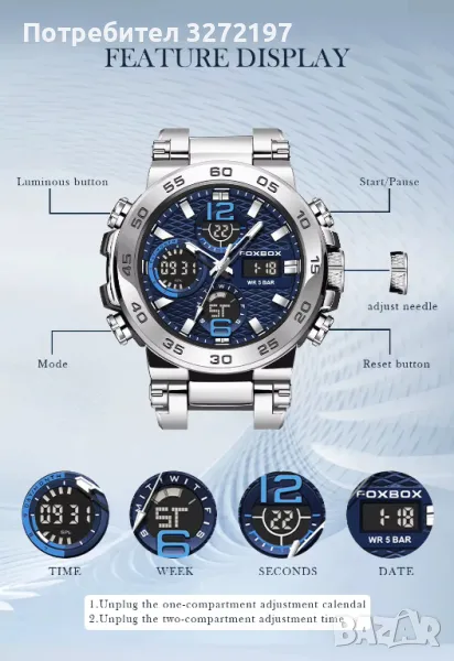 Не работете с бутона на часовника във водата) Мултифункционален