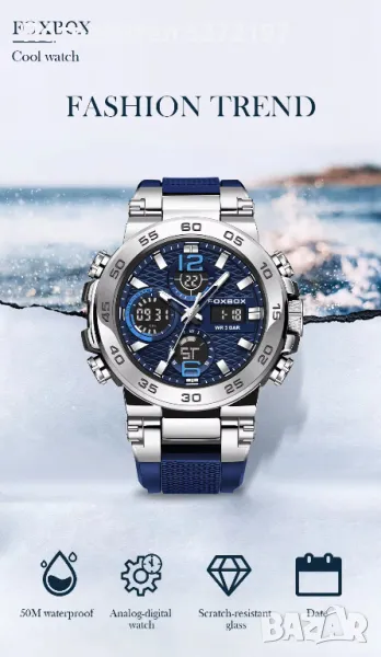 Мъжки часовник Fox BoX Casual Sport Fashion Analog Digital Hybrid Military Style Army Led