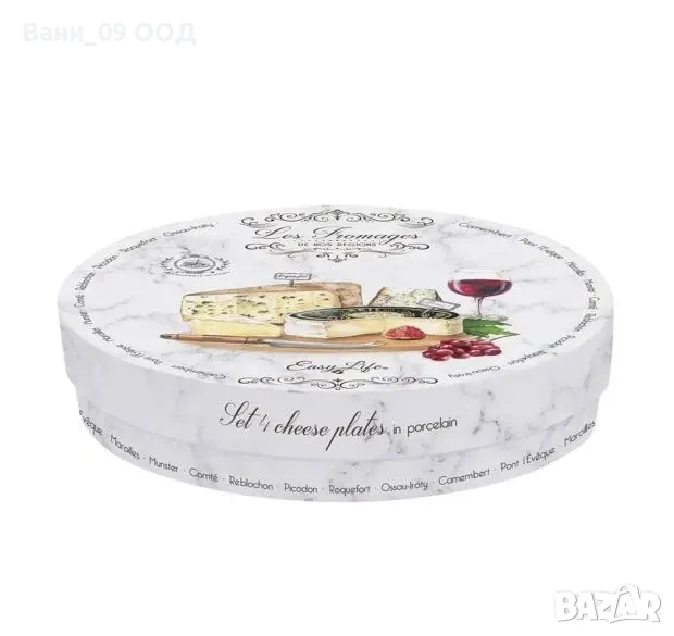 Комплект от 4 броя порцеланови чинии за сервиране , с дизайн на сирена и плодове, поставени в красива подаръчна кутия