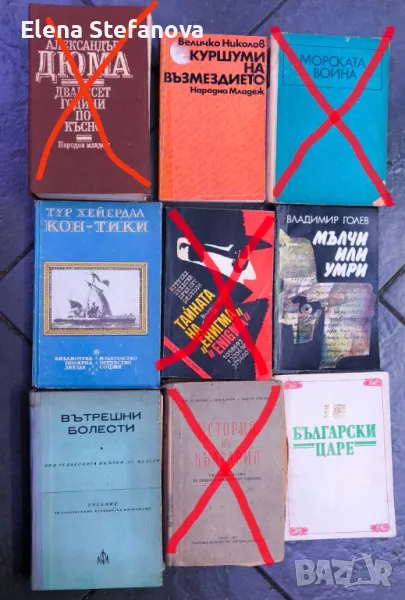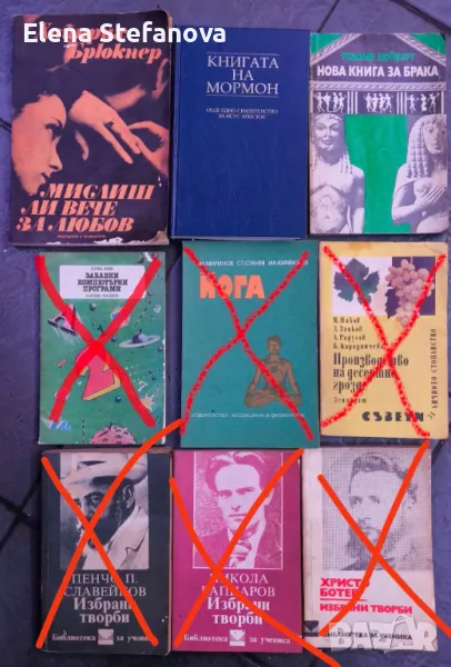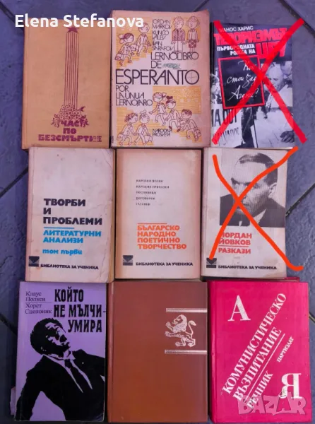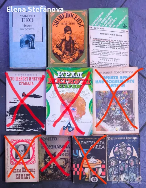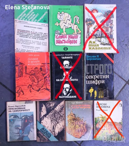 Продавам книгите от снимките. Всяка книга по 1 лев. Минимална поръчка: 10 книги: моля за разбиране, не живея в града и поне да си заслужава пътуването до там, за да изпратя.