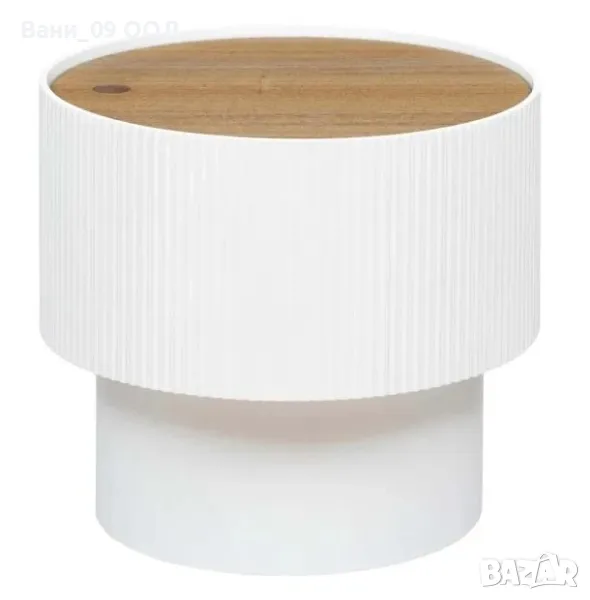 Елегантна помощна маса с място за съхранение в съчетание от бял и дървесен акцент за стилен интериор, размери: 38.5/38.5/35 см