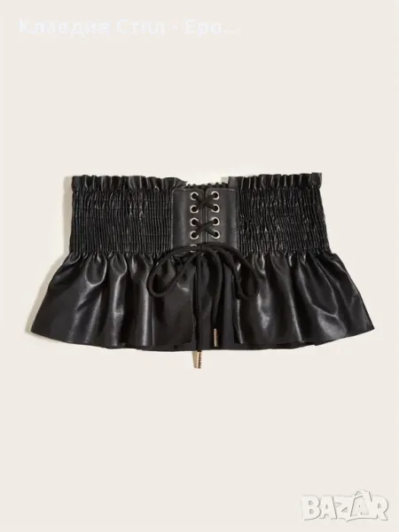 Елегантен ластичен кожен колан с пеплум → Обява 48172443