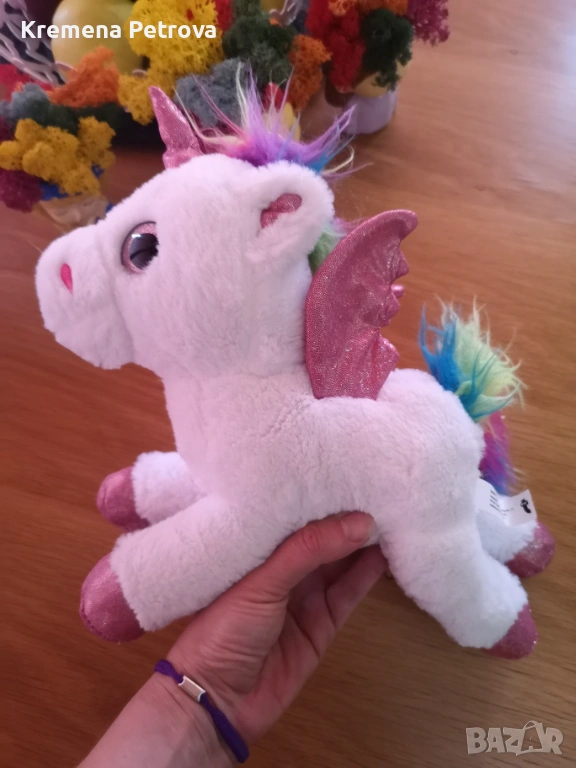 Снимка 9 и 10 : Нов Плюшен еднорог с розова коса, 36 см, Цена 5,00€ Снимка 11 и 12: Плюшен еднорог с крила, Цена 4,50€