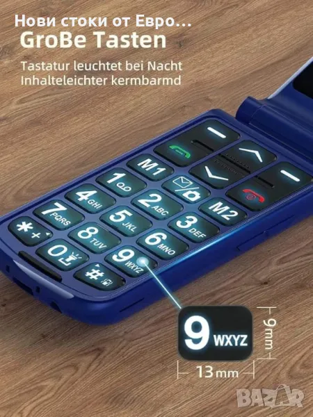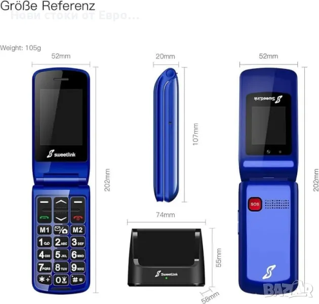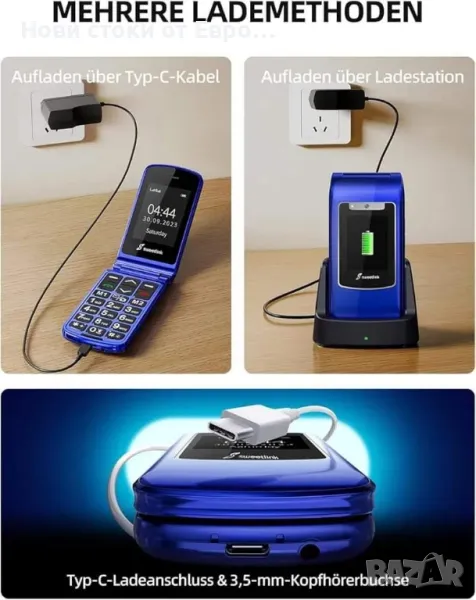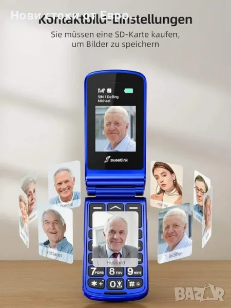SweetLink F2PLUS мобилен телефон за възрастни, сгъваем мобилен телефон с големи бутони, функция за SOS спешно повикване, 2,4-инчов цветен дисплей, 1000 mAh, станция за зареждане, бързо набиране, FM радио