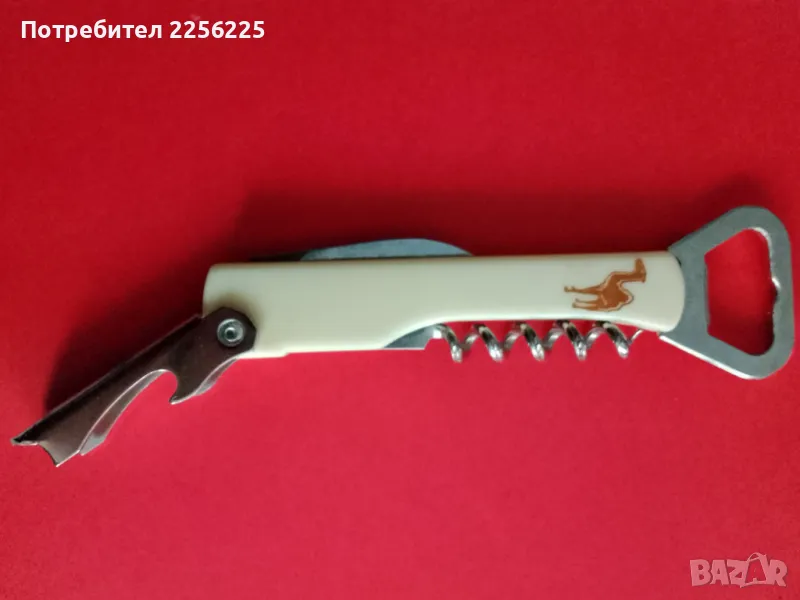 Рекламна френска винтидж отварачка за бутилки Camel с тирбушон,нож и отварачка за консерви. Произведена през 60-те години ( никога не е използвана ) .Отлично състояние.