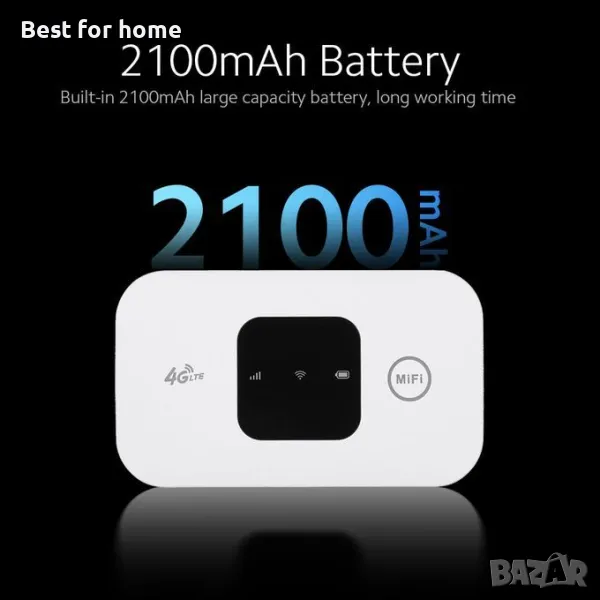 Този безжичен Mifi рутер осигурява бърз интернет достъп до до 15 устройства наведнъж, поддържа безжични мрежи и има много функции. Компактният рутер има дълъг живот на батерията, особено с включената батерия с двоен капацитет. Универсалността му позволява да се използва с всички 4G Sim карти.