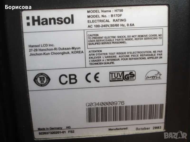 Компютърен LCD монитор 17 инча MADE IN GERMANY . Компютърен монитор от не много известната но супер качествена корейска марка "Hansol", произведен в Германия. Единствената причина че го продавам е защото синът ми иска да ми купи по издължен монитор. Иначе никога не ми е създавал проблеми.