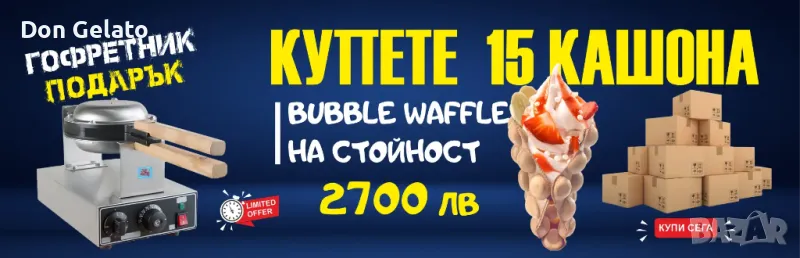 Купете промо пакет от сухата смес за бъбъл гофрети ВАНИЛИЯ, който съдържа 180 пакета / 15 кашона / и вземете