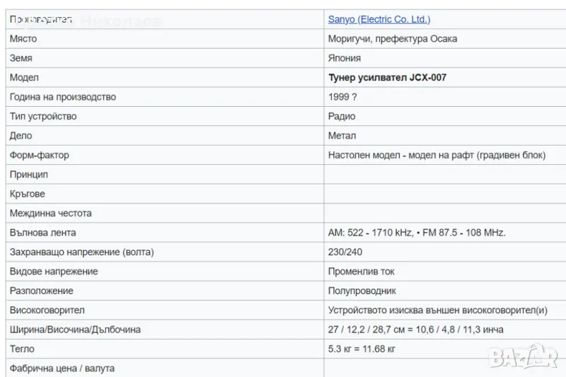 Sanyo JCX-007 Amplifier, FM AM Tuner → Обява 48175035