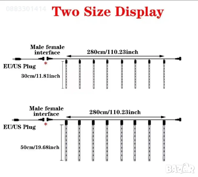 Подходяща за вътрешна и външна украса (степен на защита IP44). Продуктът е изработен с високо качество, като ефектните светлини се получават от светодиоди, което гарантира дългия му живот. Ако е необходима по-голяма дължина е необходимо да се подмени захранващия модул 5V DC с такъв отговарящ на използваната дължина.