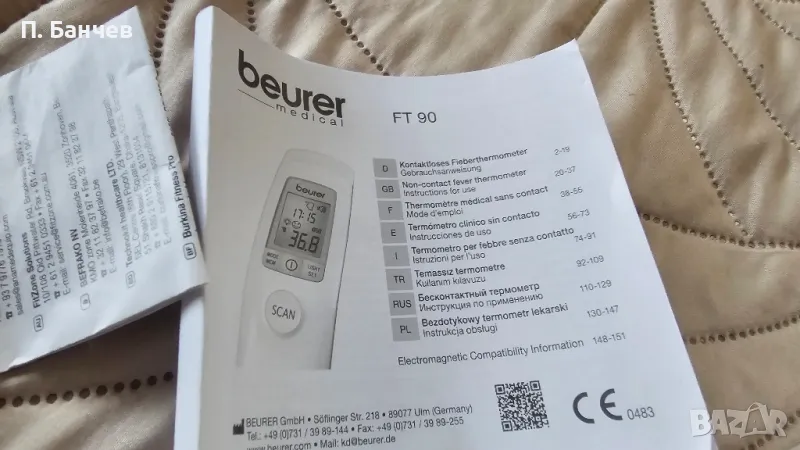 Безконтактен термометър Beurer FT 90 → Обява 48176671
