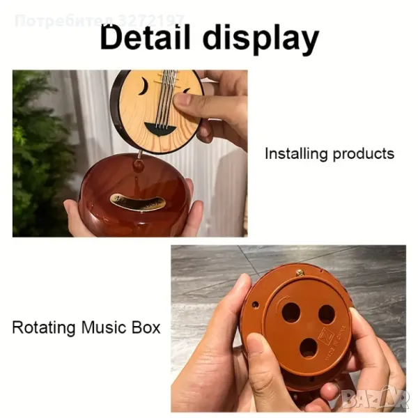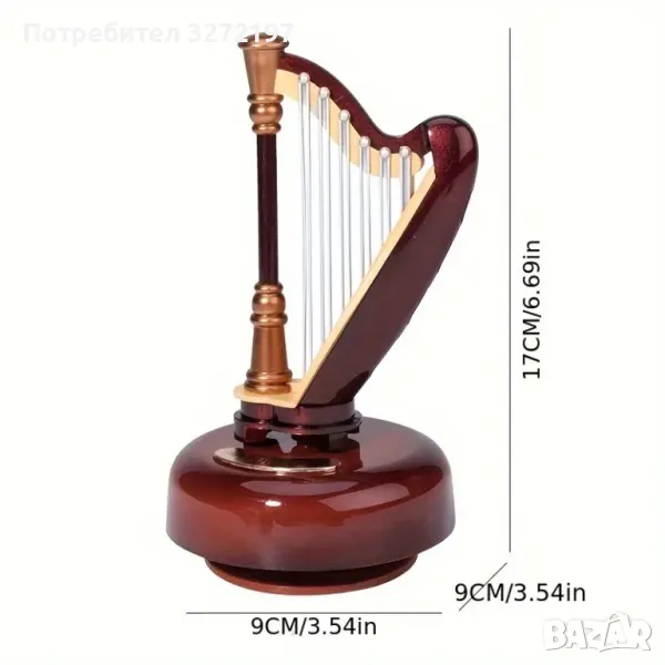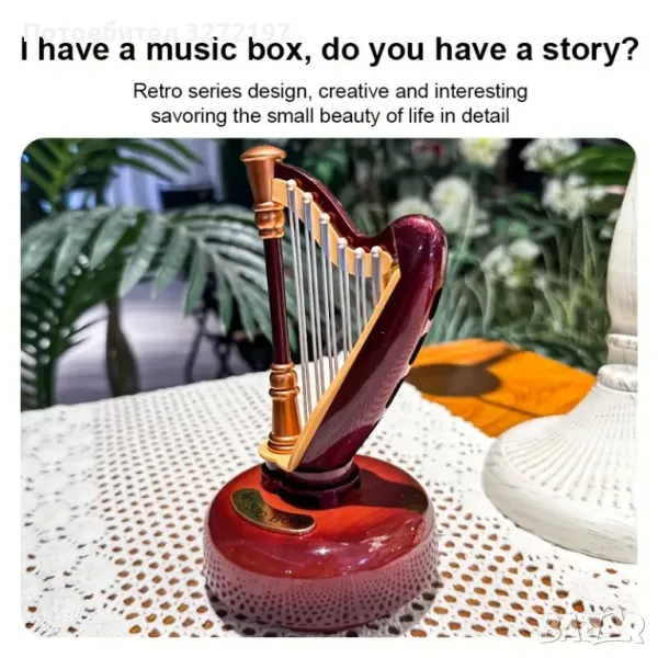 Ръчно изработена въртяща се музикална кутия с форма на арфа в ретро стил,механична, изработена от пластмаса, с класически дизайн, не се нуждае от батерии, идеална за декорация на дома и подарък.