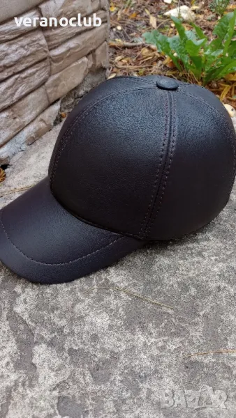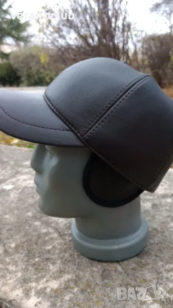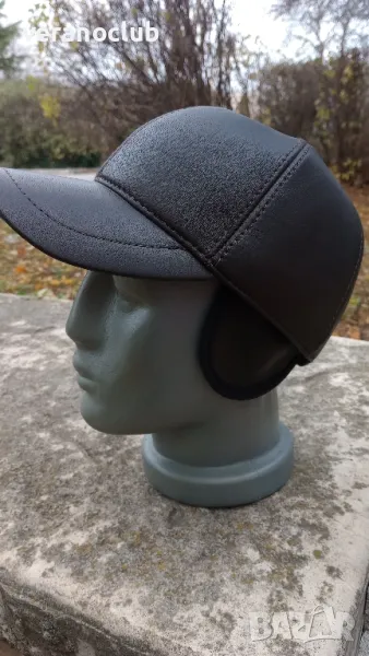 Мъжка луксозна шапка от естествена кожа в тъмнокафяв цвят. Отвътре подплатена с каракула. Отзад е с регулация и е затворена с текстилна ластична част. С две ушички, които се спускат надолу или се прибират навътре.Размер L, подходящ за 58 см обиколка на главата в см.Чудесна шапка за студено, мокро и ветровито време.