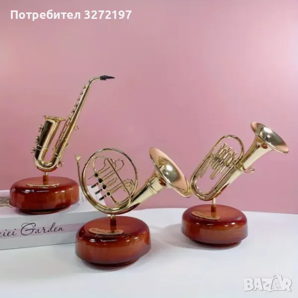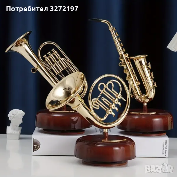 Ръчно изработена въртяща се музикална кутия с форма на тромпет в