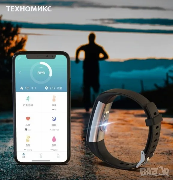 Фитнес гривна S5, i4FIT®, 0,96-инчов TFT сензорен екран, известия за APP, крачкомер, кръвно налягане, оксиметър, заседнала активност, глюкоза, температура, сърдечен ритъм, управление на камерата, IP 68, 16 спортни режима,