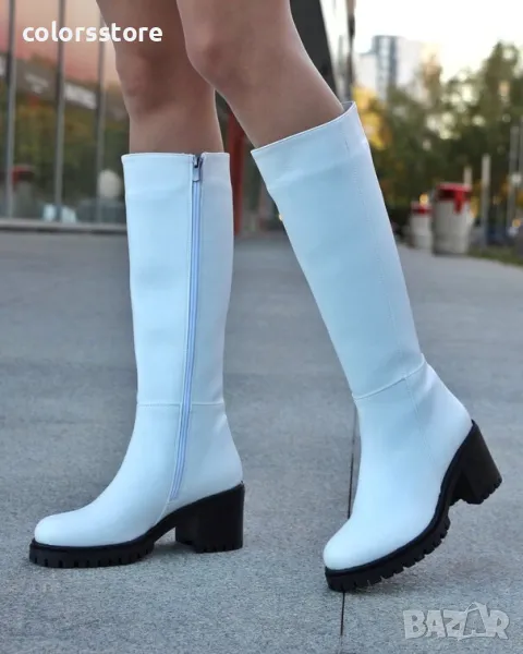 Ботуши на ток - бяла кожа с черно ходило - BSW90