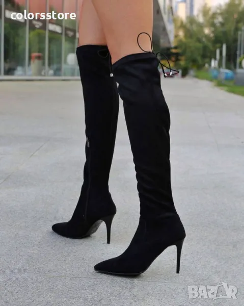 Чизми на ток - черен велур - RL10