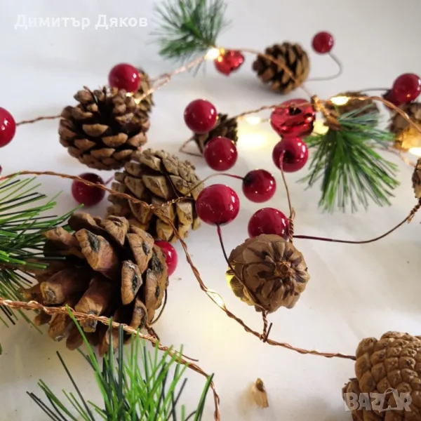 Светеща коледна украса с LED светлини, шишарки и борови клонки, снимка 1 - Декорация за дома - 48178645 Светеща коледна украса с LED светлини, шишарки и борови клонки, снимка 2 - Декорация за дома - 48178645 1/2