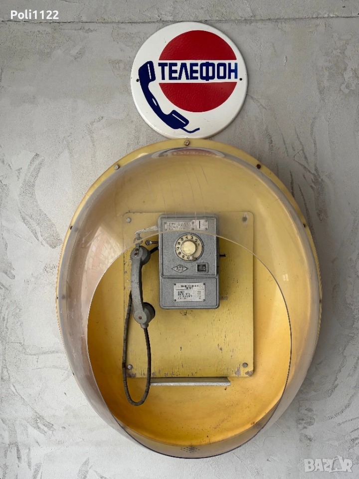 Ретро обществен монетен телефон – соц епоха, кабина „яйце“ → Обява 48179828