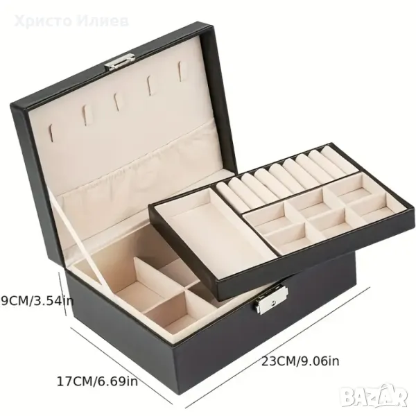 Просторен двуслоен дизайн: Тази голяма кутия за бижута предлага достатъчно място за съхранение с двуслоен дизайн, идеален за организиране на колиета, обеци, пръстени, гривни и др.